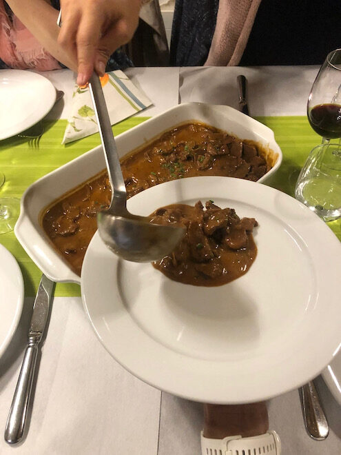 “Die Pfannen und Schüsseln mit dem Essen, der Krug mit Wasser oder Tee werden einfach auf den Tisch gestellt. Gastgeberin Romi kümmert sich um unser leibliches Wohl. Um Punkt 19 Uhr geht’s los.